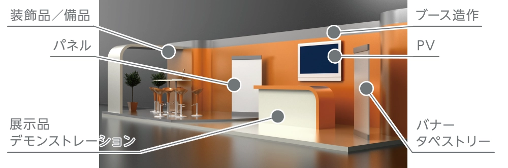 展示会ブース設営/企画イベント設営/製品デモ制作/サイン・POP/機材レンタル/オンライン展示会