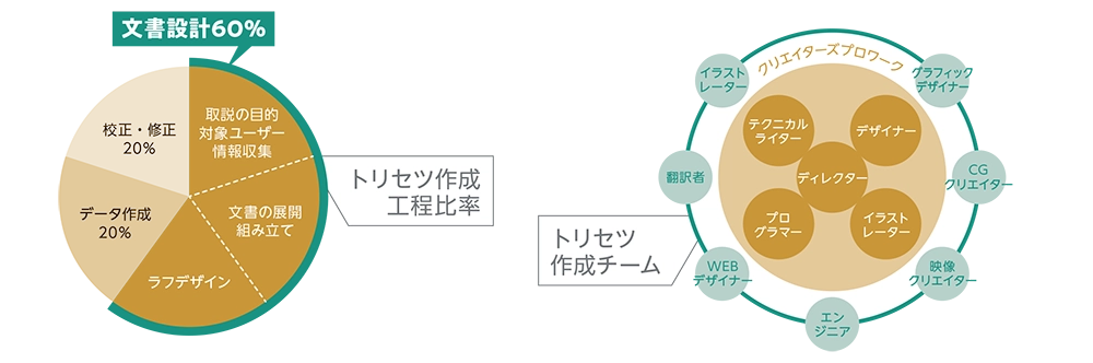 より効果的な取扱説明書の構築には、文書設計の充実が必須と考え、当社の取説作成工程では、文書設計に作業の60%を費やしています。